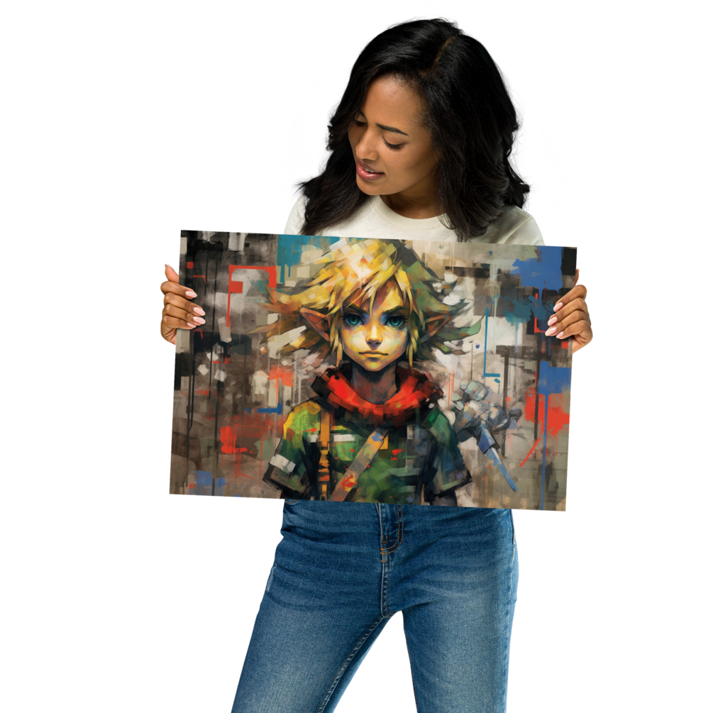 This stunning abstract graffiti painting of Link from The Legend of Zelda is a must-have for any fan of the game. The painting is done in a vibrant and colorful style that perfectly captures the spirit of the game. The painting is sure to add a touch of excitement and adventure to any room.