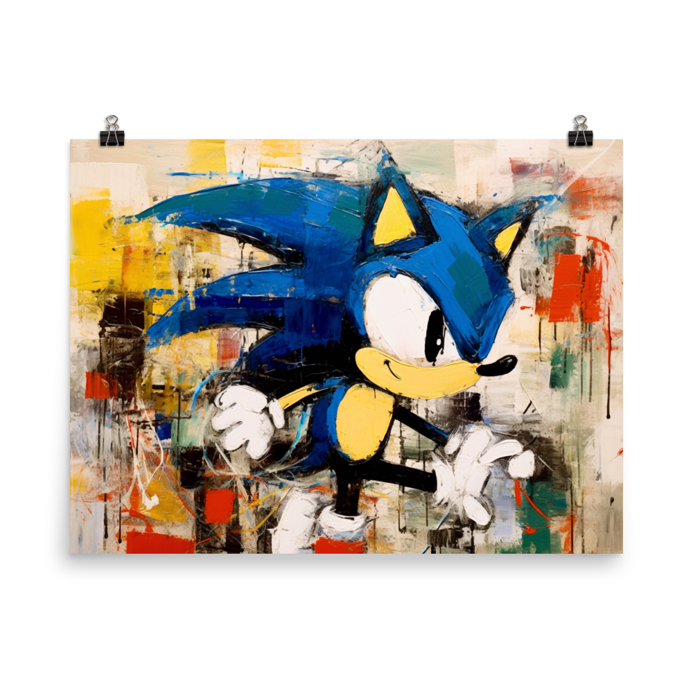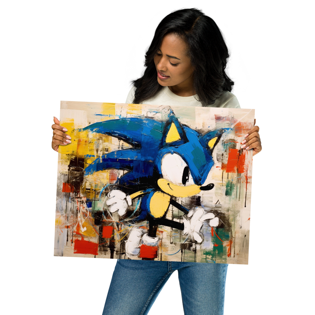 Introducing “Sonic’s Rhapsody” – an electrifying abstract digital illustration that pays homage to the beloved blue blur, Sonic the Hedgehog. This captivating artwork captures the essence of Sonic’s iconic speed, energy, and vibrant world in a truly mesmerizing way.